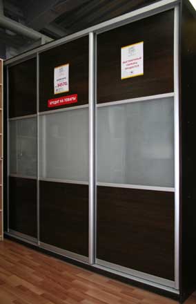 Шкаф-купе Материал: ЛДСП цвет «Венге», двери в системе KOMANDOR алюминий. ДСП + матовое стекло. Размеры: 2400х2400х600мм Стоимость 34 570 руб. Возможны любые цветовые решения ЛДСП. Разнообразный дизайн фасадов с применением рисунков и фотографий (а также собственное фото).