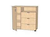 Данный образец изготовлен из ЛДСП цвет венге, кроя обработаны кромкой пвх, низ перфорация, выдвижная тумба на 4 ящика.