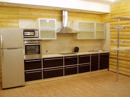 Кухонный гарнитур с барной стойкой Корпус: ЛДСП Фасад: пластик в алюминиевом профиле, стекло матовой в алюминиевом профиле. Столешница: пластик Стеновая панель: пластик Фурнитура: Blum Мойка: нержавеющая сталь Выкатная сушка, ящики с доводчиками, цоколь – пластиковый, барные полки для фруктов, барный бокалодержатель. Стоимость: от 95 000 рублей.