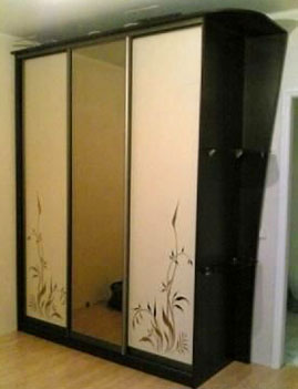 Шкаф-купе по размерам заказчика. Декор ДСП – венге. Профиль алюминиевый Aluma-Decor коньяк. Двери зеркало серебро с пескоструйным рисунком (более 100 готовых рисунков, возможно нанесение риснука заказчика). Услуга “МОБИЛЬНЫЙ ОФИС”. Замеры, дизайн-проект, заключение договора, оплата в любом удобном для вас месте. Выезд дизайнера - бесплатно.